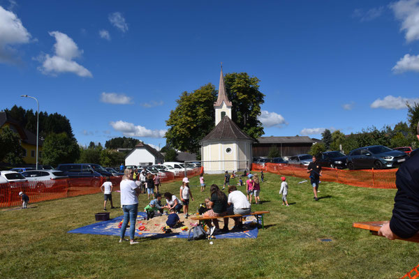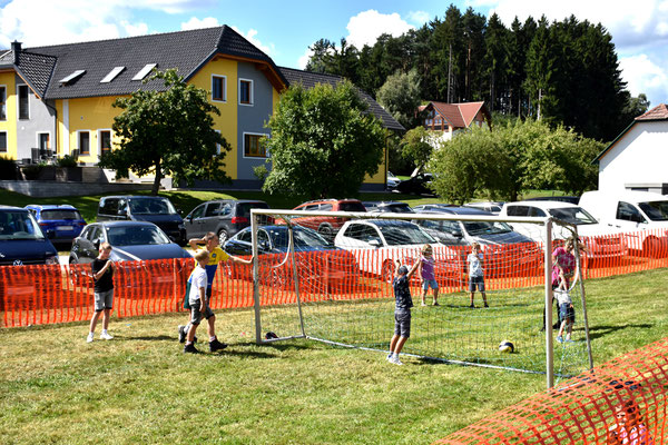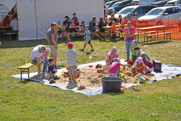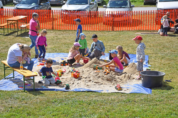 Zur Freude der Kids gab es einen Sandhaufen und die Möglichkeit zum Fußballspielen.